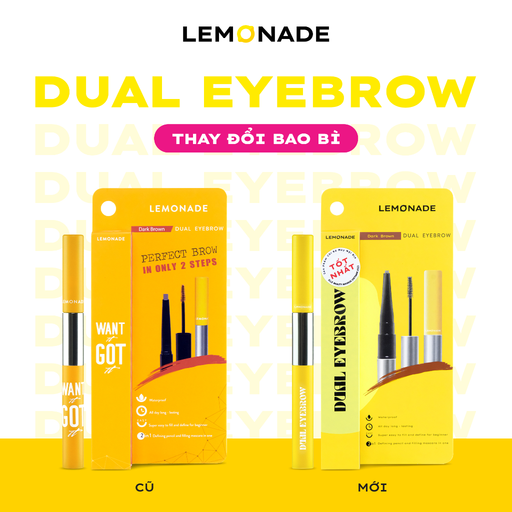 Lemonade Dual Eyebrow mang lại đôi chân mày hoàn hảo từng nét vẽ và từng sợi lông mày, không lem và không thấm nước, có độ bền màu cao.