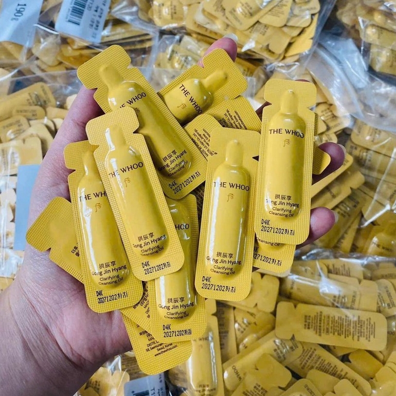 Công dụng của Dầu tẩy trang Whoo Gongjinhyang Cleansing Oil:- Dễ dàng làm sạch sâu bụi mịn và cặn trang điểm, dịu nhẹ, không gây kích ứng và nhờn rít.- Bổ sung Tân dịch cho cấp ẩm và làm mềm da- Làm sạch nhanh và dễ dàng nhờ dầu chứa hạt nhũ hóa có tương thích cao với nước.- Vừa giữ ẩm vừa kiểm soát nhờn hiệu quả, không kén da.Cách sử dụng :- Bước 1: Lấy một lượng dầu tẩy trang Whoo vừa đủ vừa đủ dàn trải lên mặt và massage từ 30 giây cho tới 1 phút (Lưu ý tay và mặt đều ở trạng thái khô).- Bước 2: Lấy một ít nước và massage trong 30 giây, lúc này dầu sẽ chuyển sang dạng sữa để một lần nữa lấy đi những cặn bẩn còn sót lại trên da.- Bước 3: Rửa mặt lại với nước, sau đó dùng sữa rửa mặt Whoo giúp tối ưu hóa hiệu quả làm sạch sâu.Thành Phần- Nhân sâm: thúc đẩy tuần hoàn máu dưới da tốt, cho làn da hồng nhuận khỏe mạnh. - Lộc nhung: chứa hàm lượng axit amin và collagen cao, giúp da săn chắc và làm chậm quá trình hình thành nếp nhăn.- Đương quy: vitamin E có trong nguyên liệu giúp cung cấp độ ẩm cần thiết cho da, mang đến làn da tươi trẻ rạng rỡ. - Sơn thù du: Hàm lượng vitamin A và những dưỡng chất có trong sản phẩm giúp se khít lỗ chân lông, tăng độ đàn hồi cho da và kháng khuẩn. - Ngũ da bì: Có tác dụng thanh lọc các độc tố khỏi da, cải thiện nếp nhăn và kháng viêm hiệu quả. - Thiên môn đông: giúp dưỡng ẩm cho da, thúc đẩy quá trình sản sinh collagen, mang đến vẻ ngoài căng mướt, mềm mịn.