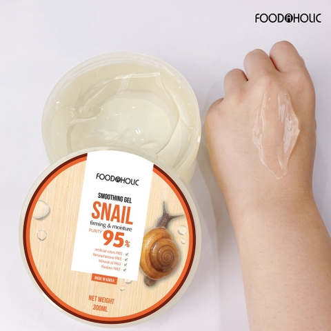 Gel dưỡng ốc sên Foodaholic Snail Firming & Moisture Soothing Gel với 95% thành phần là dịch nhầy ốc sên nổi tiếng công dụng tái tạo da, chống lão hóa được các chuyên gia da liễu đánh giá cao. Đồng thời bổ sung chiết xuất rau má, rau sam, Allantoin và HA dưỡng ẩm, làm dịu và phục hồi tổn thương. Sản phẩm cải thiện tối ưu những vùng da dễ lão hoá, chảy xệ mà chúng ta quên chăm sóc.