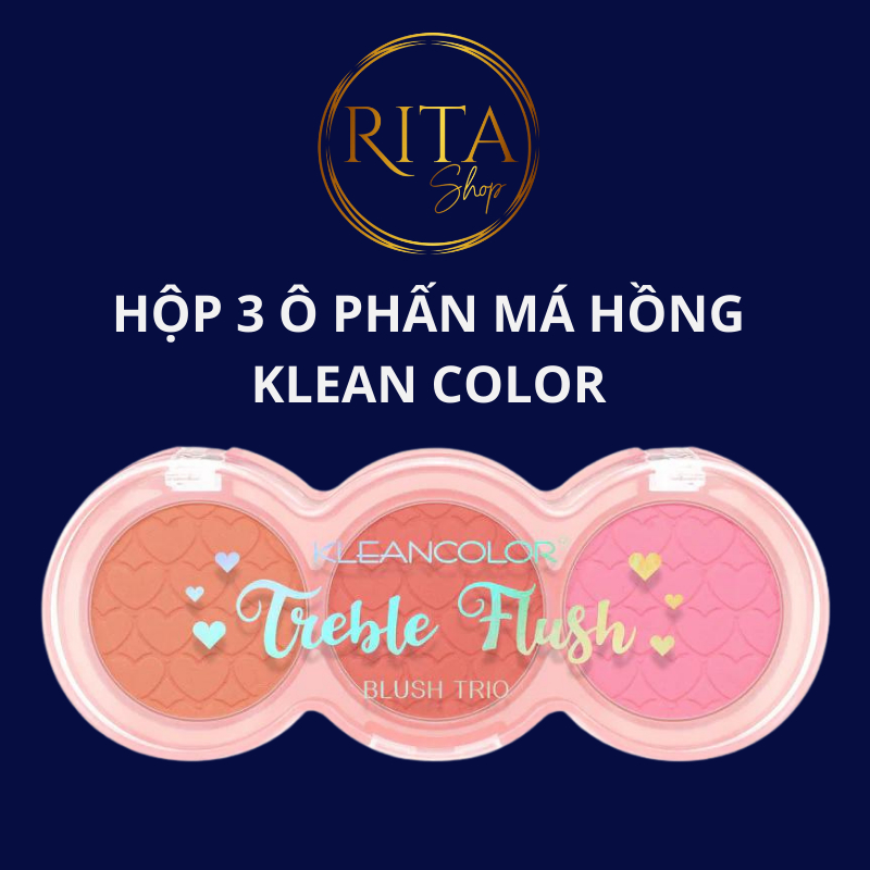 Hộp 3 ô phấn má hồng Kleancolor Treble Flush gồm các ô màu nhũ, lì lên màu chuẩn, mướt cho bạn sự đa dạng trong phong cách trang điểm