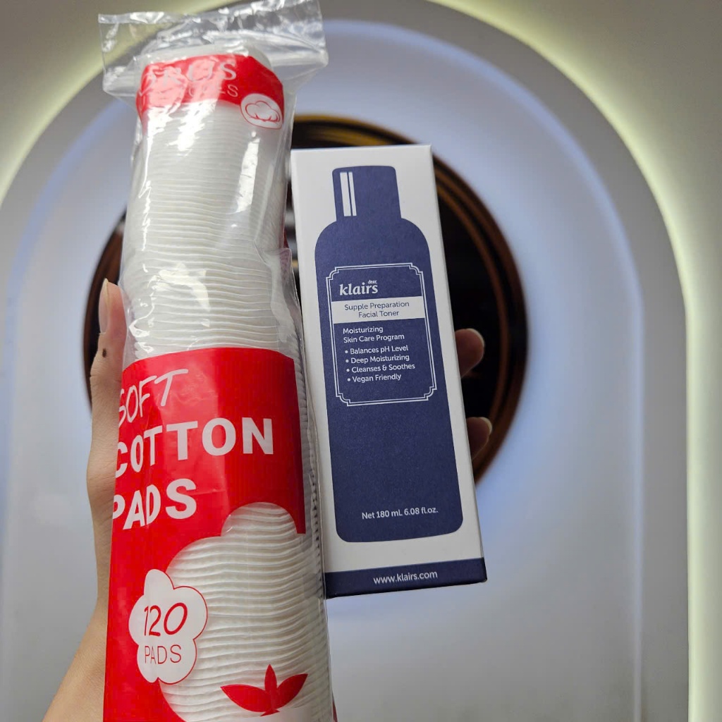 - Thấm 3-4 giọt ra bông tẩy trang thoa đều lên mặt, hoặc đổ trực tiếp lên tay vỗ nhẹ để nước hoa hồng thấm đều vào da.