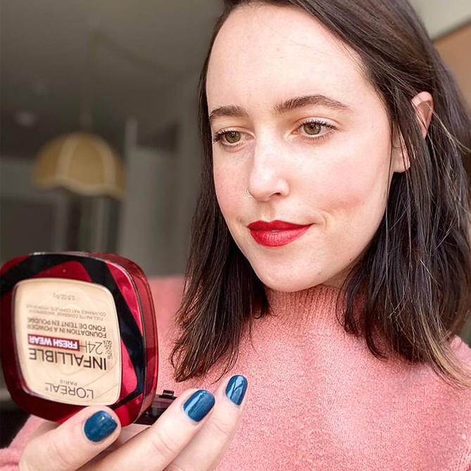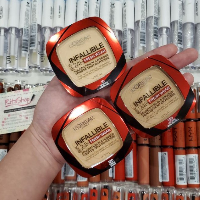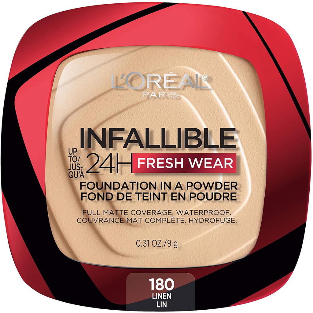 - Phấn nền L'oreal Infallible 24 hours fresh wear với từng hạt phấn cực mịn giúp che phủ khuyết điểm trên da hiệu quả nhưng vẫn tạo hiệu ứng kem nền mỏng mịn, nhẹ da