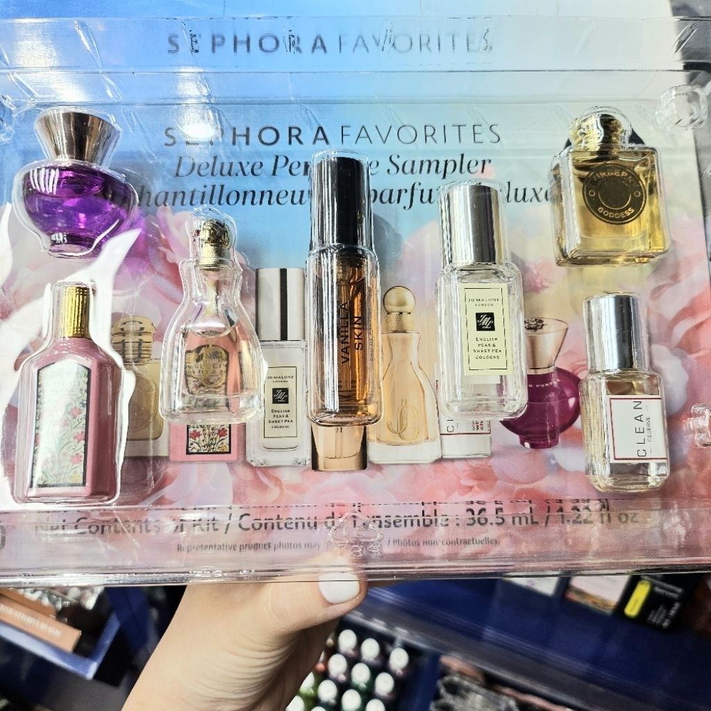 Set gồm:- 1 Goddess EDP 5ml- 1 Clean Reverse Whipped Cherry EDP 3ml- 1 Flora Gorgeous Gardenia EDP 5ml- 1 I Want Choo EDP 4.5ml- 1 Jo Malone Blush Pear & Sweet Pea Cologne EDT 9ml- 1 Phlur Vanilla Skin EDP 5ml- 1 Dylan Purple EDP 5ml