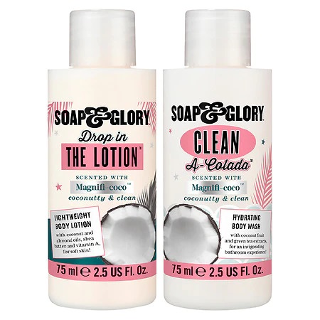 Set Sữa tắm và lotion dưỡng thể Soap and Glory hương nước hoa vanilla, dừa nhiệt đới gồm"