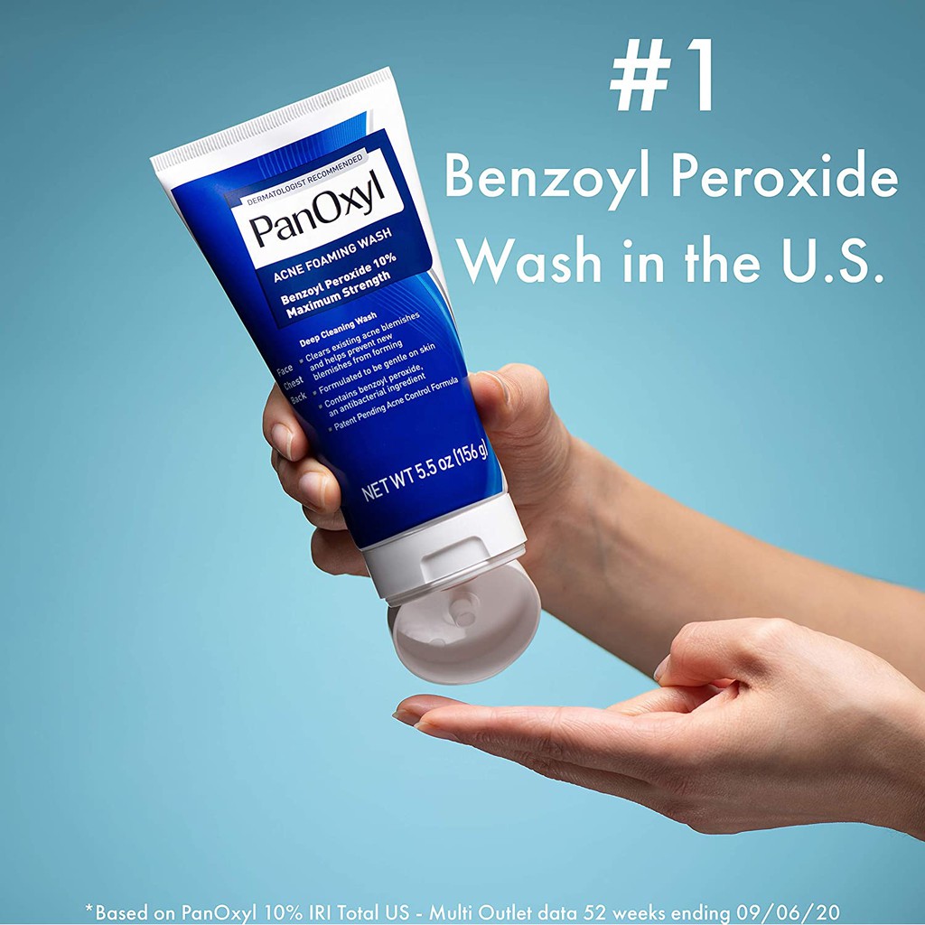 Sữa rửa mặt giảm mụn Panoxyl Creamy Acne Wash 4% Benzoyl Peroxide - Sữa rửa mặt dạng cream chứa 4% Benzoyl Peroxide, thâm nhập vào sâu lỗ chân lông giúp loại bỏ hầu hết bụi bẩn và giữ cho lỗ chân lông thông thoáng. - Sản phẩm được bác sĩ da khuyến cáo sử dụng để tẩy da chết hiệu quả, giúp thu nhỏ lỗ chân lông, giảm mụn. - Có thể sử dụng hàng ngày cho vùng mặt hay vùng cơ thể bị lên mụn (như vùng lưng, cổ..) - Sữa rửa mặt có chứa 3 loại humectants (chất hút ẩm) và 4 emollients (chất làm mềm da) để da không hề bị khô sau khi sử dụng Sữa rửa mặt tạo bọt giảm mụn Panoxyl Foaming Acne Wash Maximum Strength 10% Benzoyl Peroxide - Sữa rửa mặt tạo bọt chứa 10% Benzoyl Peroxide, thâm nhập vào sâu lỗ chân lông giúp loại bỏ hầu hết bụi bẩn và giữ cho lỗ chân lông thông thoáng. - Sản phẩm được bác sĩ da khuyến cáo sử dụng để tẩy da chết hiệu quả, giúp thu nhỏ lỗ chân lông, giảm mụn. -Có thể sử dụng hàng ngày cho vùng mặt hay vùng cơ thể bị lên mụn (như vùng lưng, cổ..) -Sữa rửa mặt có chứa 3 loại humectants (chất hút ẩm) và 4 emollients (chất làm mềm da) để da không hề bị khô sau khi sử dụng Hướng dẫn sử dụng: - Dùng mỗi ngày 2 lần vào buổi sáng/ tối. - Vì sản phẩm có Benzoyl Peroxide nên các bạn nên sử dụng kem chống nắng spf 30 trở lên. #ritashopvn #panoxyl #suaruamat #hangcosan #hangchinhhang #mypham #saigon #tphcm