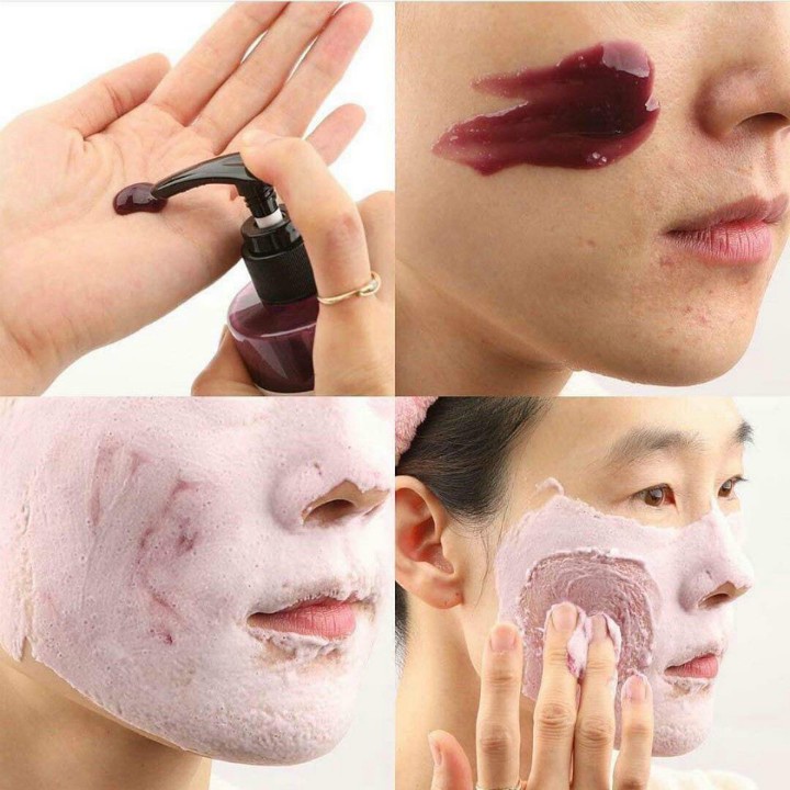 - Lấy một lượng gel vừa đủ thoa đều lên mặt. Sau đó phần gel sẽ giả phóng oxy, nổi lên những hạt bọt nhỏ liti len lỏi vào sâu trong da. Có tác dụng làm sạch hết bụi bẩn và lớp make up.