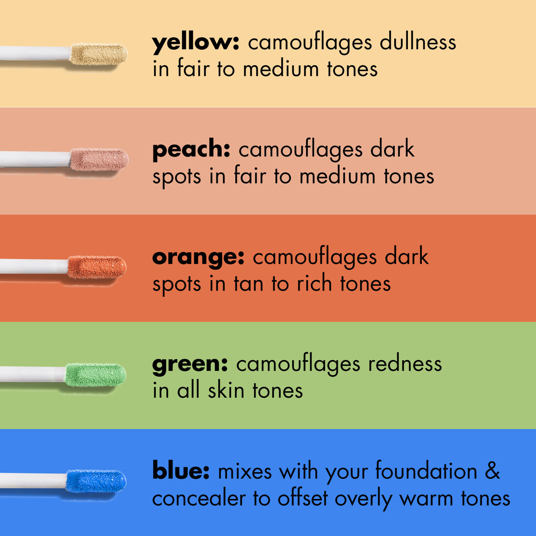 - Màu vàng: triệt trắc vùng da bị xỉn màu cho tone da trắng đến da vừa